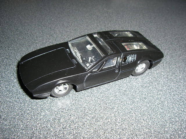 This Solido Ferrari 312 was given to me as a joke by an associate who knew I collected model cars. When I got it, it looked like it had been in the bottom of a toy box for a decade. To restore it the model was stripped and repainted. The mirror and roll cage were scratch built. It isn't an exact representation of a car from a specific race, but it shows pretty well, and I like that it has a driver.